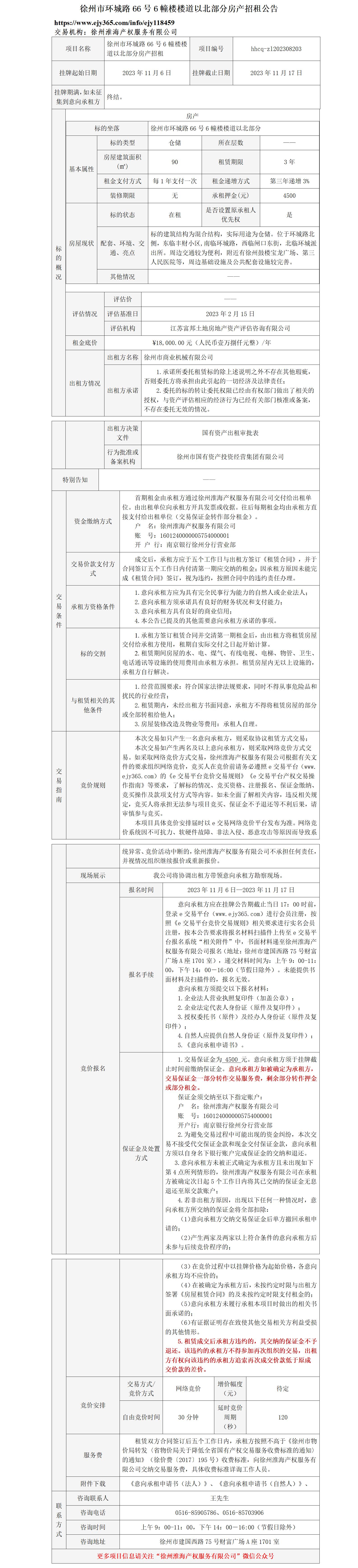 徐州市環(huán)城路66號6幢樓樓道以北部分房產招租公告