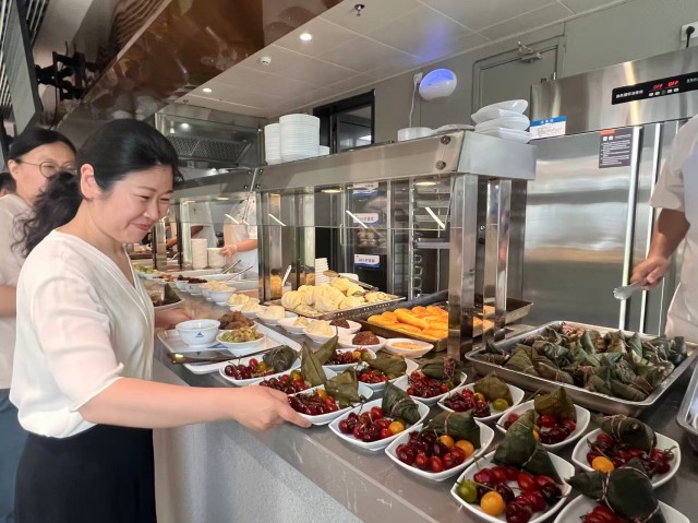 次日中午,集團(tuán)工會(huì)在員工餐廳精心準(zhǔn)備了色彩繽紛的水果拼盤、香甜軟糯的蜜棗粽子,為集團(tuán)員工送上節(jié)日祝福。大家圍坐在一起,一邊分享昨日包粽的趣事,一邊品嘗蜜粽鮮果,食堂里洋溢著歡聲笑語(yǔ)。