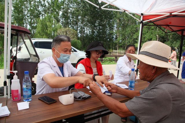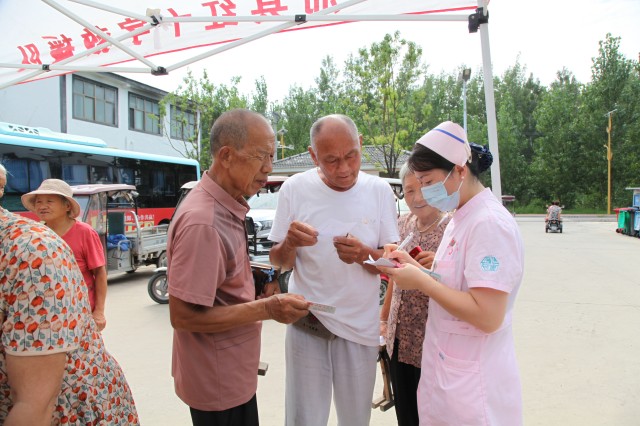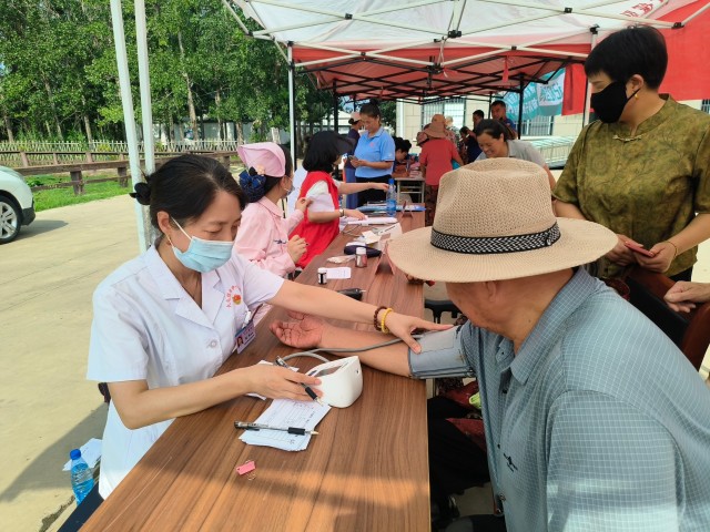 活動(dòng)當(dāng)天,很多村民早已在活動(dòng)現(xiàn)場(chǎng)等候醫(yī)務(wù)人員的到來(lái)。醫(yī)務(wù)志愿者們迅速搭建起臨時(shí)服務(wù)臺(tái),立即開(kāi)始為村民們免費(fèi)測(cè)量血壓、血糖,細(xì)致檢查視力,并結(jié)合檢測(cè)數(shù)據(jù)開(kāi)展針對(duì)性健康指導(dǎo),解答健康問(wèn)題咨詢。針對(duì)現(xiàn)場(chǎng)老年村民普遍存在的血壓偏高問(wèn)題,醫(yī)務(wù)人員重點(diǎn)講解了低鹽飲食、控制體重、規(guī)范用藥注意事項(xiàng)及情緒調(diào)節(jié)方法,條理清晰的講解讓村民們頻頻點(diǎn)頭。