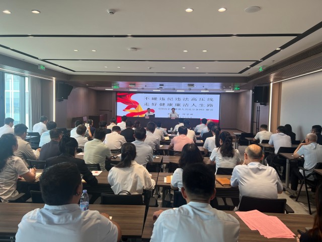 為進一步增強國有企業(yè)管理人員的廉潔從業(yè)意識,規(guī)范從業(yè)行為,8月15日下午,國投集團開展“不碰違紀違法高壓線,走好健康廉潔人生路”專題講座。本次講座特邀請徐州市紀委常委、監(jiān)委委員邱學鋒進行授課。集團公司領導班子成員、本部正副職管理人員、各二級公司班子成員、各三級公司主要負責人、掛職青年干部、集團公司專職紀檢監(jiān)察干部參加本次培訓。講座由集團公司黨委書記、董事長孟光主持。