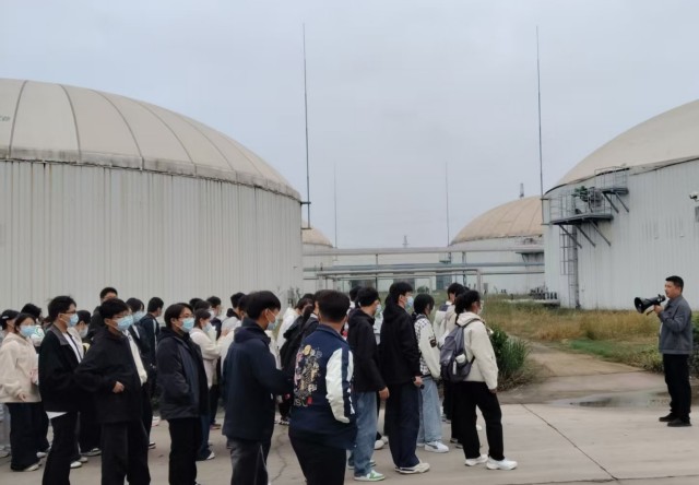 在國(guó)新公司相關(guān)負(fù)責(zé)人陪同下,師生們系統(tǒng)參觀了中控室、沼氣脫硫系統(tǒng)、厭氧發(fā)酵裝置、預(yù)處理車(chē)間、餐廚處理車(chē)間及沼液膜濃縮車(chē)間等關(guān)鍵工藝環(huán)節(jié)。針對(duì)學(xué)生的學(xué)科背景,講解人員聚焦智能化管控系統(tǒng)、環(huán)保處理工藝及機(jī)電設(shè)備的運(yùn)行原理等內(nèi)容進(jìn)行了深入講解,使同學(xué)們?cè)谡鎸?shí)的產(chǎn)業(yè)場(chǎng)景中,直觀感受到理論知識(shí)與工程實(shí)踐的深度融合,進(jìn)一步激發(fā)了專(zhuān)業(yè)研習(xí)熱情與職業(yè)方向認(rèn)同。